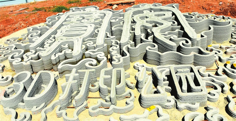3D打印混凝土技術(shù)在建設(shè)施工現(xiàn)場(chǎng)直接完成人行鋪地、雕塑、座椅、樹池、花壇、擋土墻等“打印”建造。