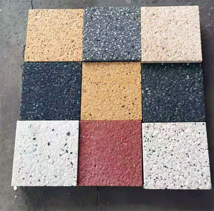 色彩豐富、可仿制各種類花崗巖的面層、肌理、質(zhì)感,其效果完全可以與花崗巖媲美,根據(jù)設(shè)計的要求,在地面鋪裝跳色中表現(xiàn)很優(yōu)異。